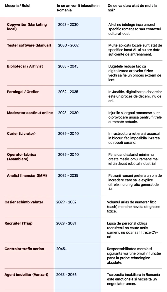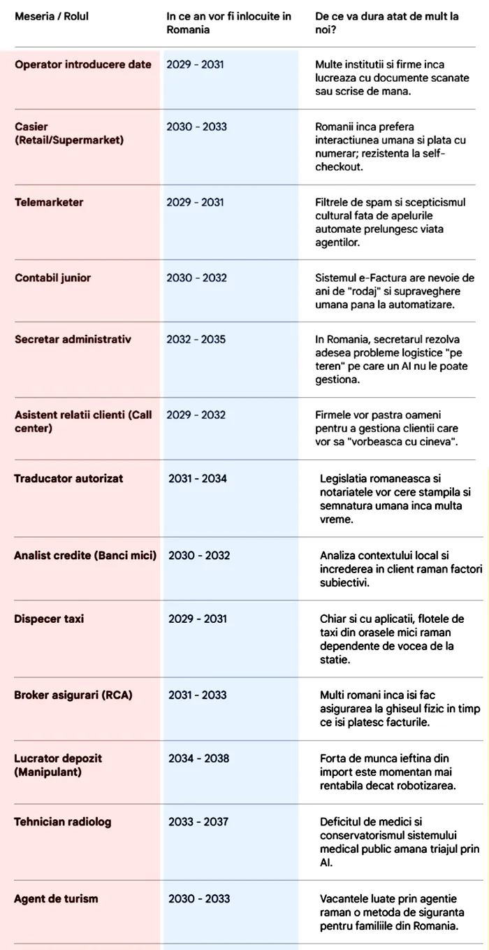 În ce an ai putea fi înlocuit de AI în România, în funcție de meseria ta