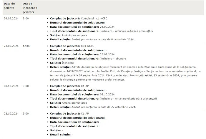 Marți, 8 octombrie, Înalta Curte de Casația și Justiție a amânat, din nou, pronunțarea în această speță. Astfel, a fost fixat un nou termen de judecată, pentru data de 22 octombrie 2024.