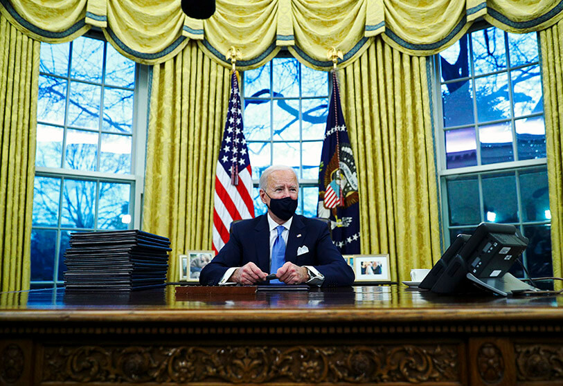 Joe Biden, după preluarea mandatului, a debutat în Biroul Oval al Casei Albe și a aprobat 17 ordine executive, multe dintre ele inversând deciziile anterioare ale fostului președinte Donald Trump.