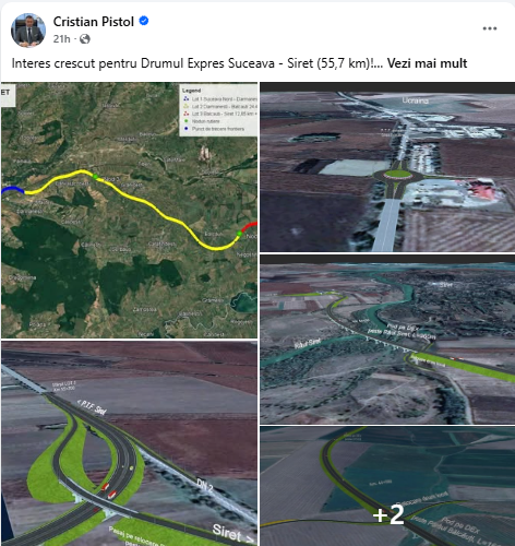 Ultima postare de pe pagina de Facebook a lui Cristian Pistol a fost făcută în urmă cu 21 ore și este legată de Drumul Expres Suceava – Siret.
