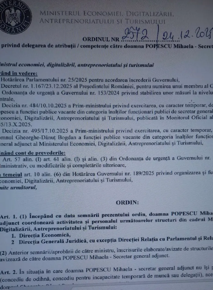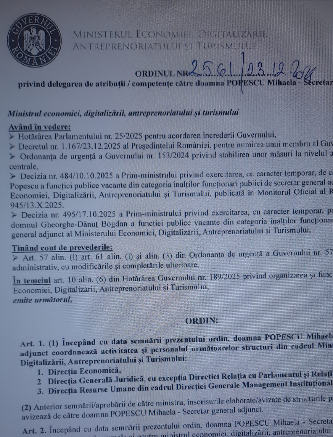 Numai că, a doua zi, pe 24 decembrie, lista cu atribuţii a Mihaelei Popescu se subţiase şi anume, a rămas fără ultimul punct: Resursele Umane.