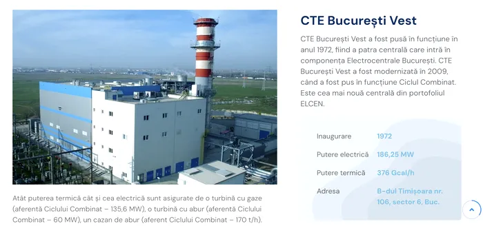 C.E.T București Vest a fost pusă în funcţiune în anul 1972 și este a patra centrală care intră în componenţa Electrocentrale Bucureşti. CTE București Vest a fost modernizată în 2009, când a fost pus în funcțiune Ciclul Combinat. Este cea mai nouă centrală din portofoliul ELCEN, conform site-ului instituției.