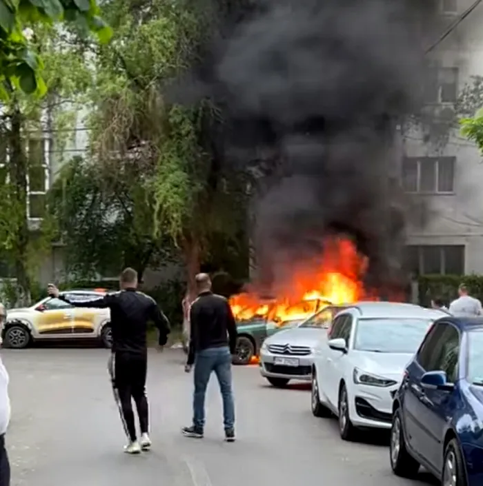 Un incendiu a izbucnit, luni după-amiază, la un autoturism aflat într-o parcare din Ploiești, iar flăcările s-au extins rapid și la alte mașini parcate.