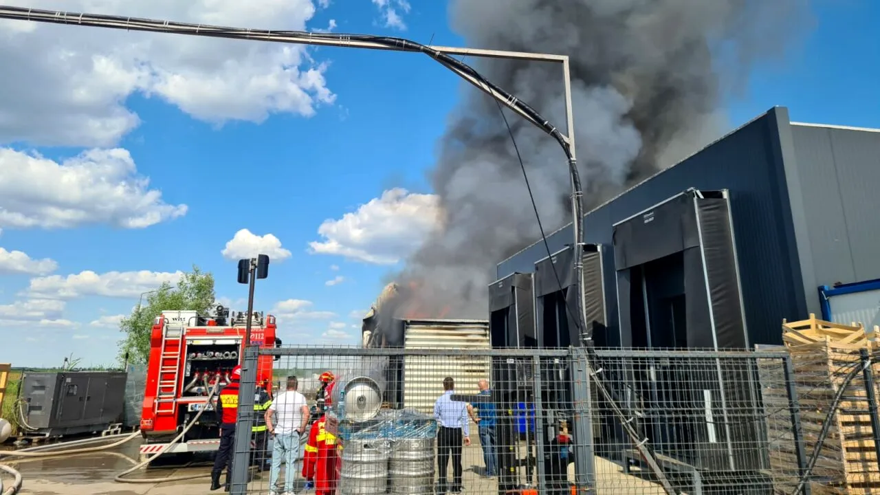 Pompierii din Ilfov au intervenit, duminică după-amiază, la stingerea unui incendiu izbucnit la Complexul Therme din Balotești. Flăcările au izbucnit la un depozit de alimente în care sunt depozitate materiale de construcție și mase plastice.