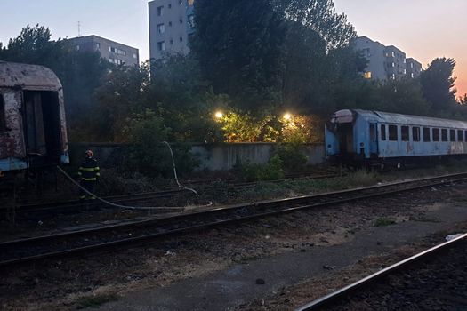 Flăcările au pornit de la un vagon de tren aflat pe o linie secundară, dar s-a extins și la alte două vagoane, tot dezafectatea, aflate în lateral.