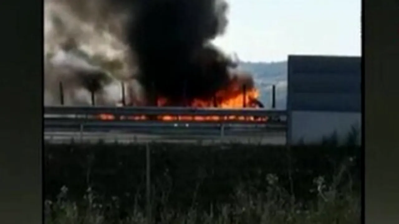 Prima pagină » Actualitate » Incendiu pe A3. Un camion încărcat cu baloți de paie a luat foc în timpul mersului