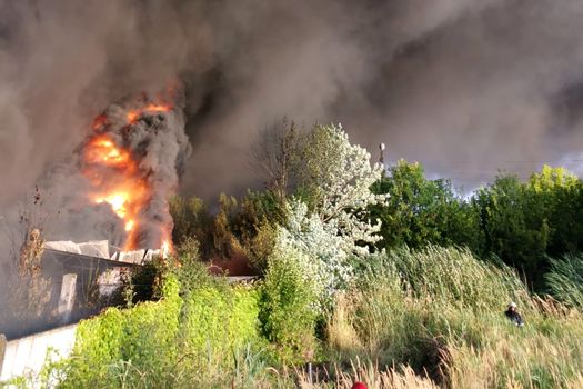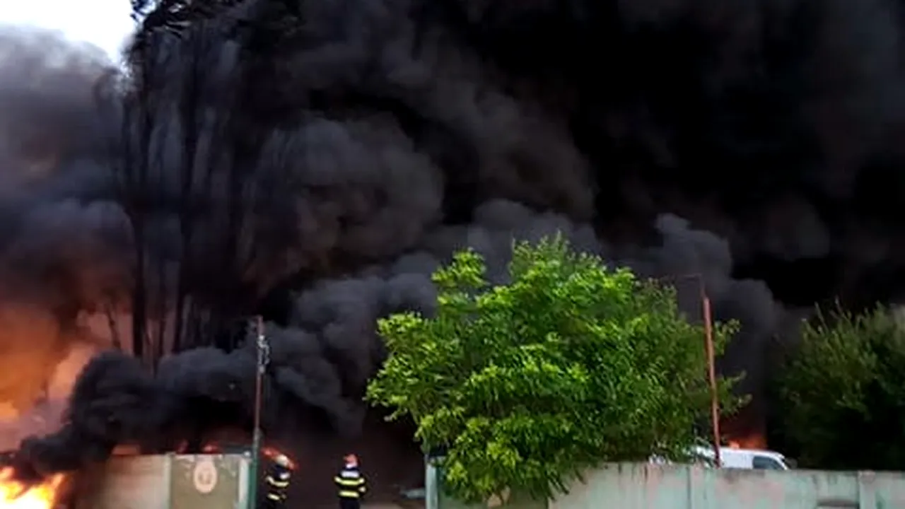Incendiu puternic în Bihor. Un depozit de deşeuri din plastic a luat foc