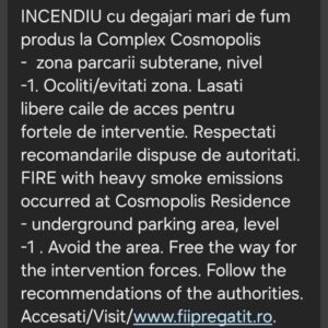 Pentru informarea populației din zonă a fost emis și un mesaj RO-ALERT.