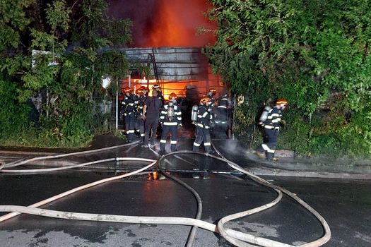 Martori au declarat că ar fi auzit mai multe explozii în urma incendiului de la service-ul auto. Un bărbat care a încercat să stingă flăcările a suferit arsuri la mâini.