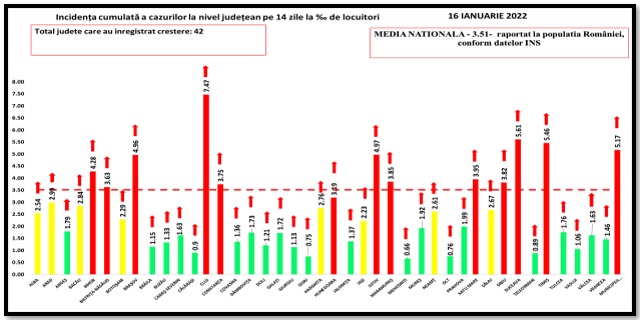 „Conform datelor existente la nivelul CNCCI la data de 16 ianuarie 2022, ora 10.00, în intervalul de 24 de ore, au fost înregistrate 7.595 cazuri de persoane pozitive cu SARS-COV-2”, conform sursei citate.