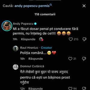 Andy Popescu a filmat întreaga intervenție, după care a postat imaginile și s-a arătat revoltat de faptul că mașina poliției avea girofarul aprins și sirena pornită. Totodată, el a scris pe o platformă de socializare, că i s-a întocmit dosar penal pentru conducere fără permis și a anunțat că va face un podcast special în care o să vorbească despre cele întâmplate.
