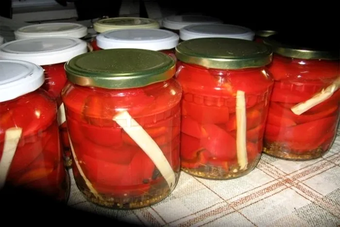 5. Turnarea soluției: Toarnă soluția caldă (nu fierbinte) peste gogoșari până îi acoperi complet. Închide bine borcanele cu capacele sterilizate.