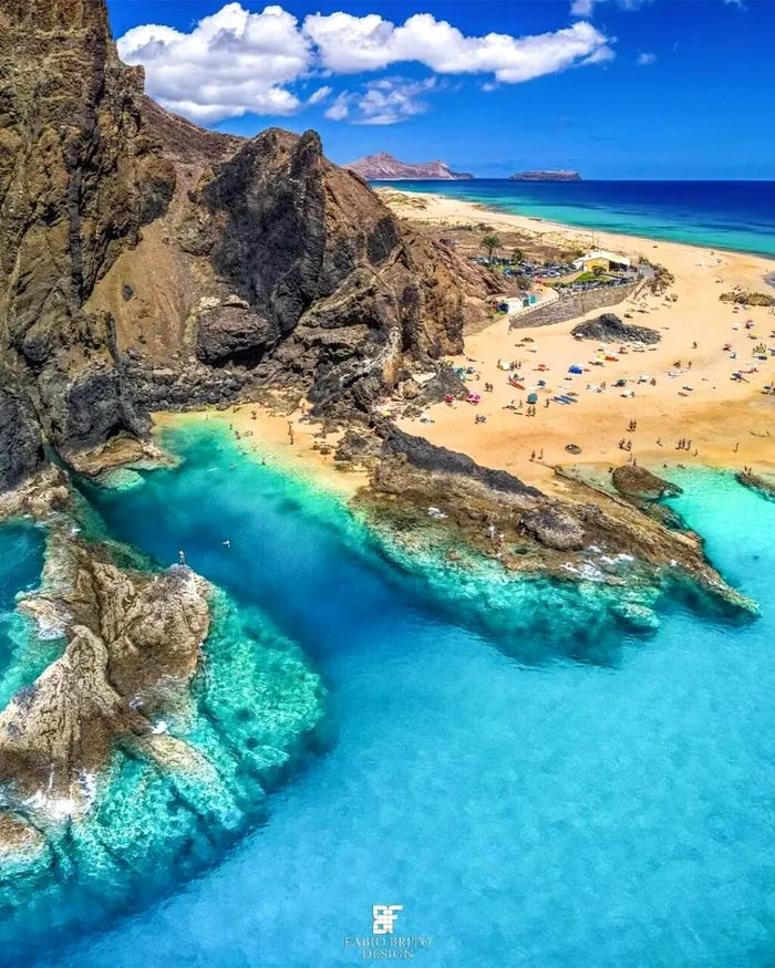 ”Insula Porto Santo este un paradis de auriu împletit cu albastru, un loc liniștit, invitând la relaxare și odihnă. Situată în Oceanul Atlantic, Porto Santo ( având o lungime 11 km și lățime de 6 km), a fost numită Insula de Aur, pentru plaja sa întinsă, uimitoare, cu nisip fin și mătăsos, cu o lungime de 9 km, scăldată de ape turcoaz. Clima din Porto Santo, blândă pe tot parcursul anului, cu o temperatură a mării cuprinsă între 17ºC și 22ºC, face ca această insulă să fie mereu atractivă, chiar și iarna”.