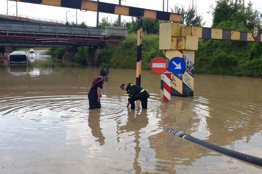 Inundații în Municipiul Brașov după ce râul care trece prin zona Craiter din oraș a ieșit din matcă.