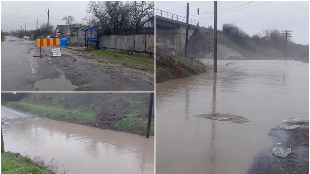 Drum închis din cauza ploilor, în Dolj. În urma precipitațiilor a fost închis drumul DJ 641, localitatea Pielești (sat Pârșani), pârâul Teslui.