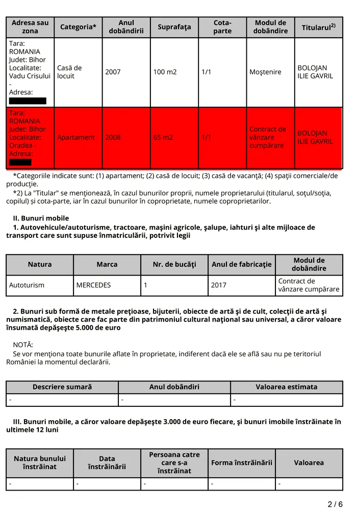 La patru luni distanță de la acest moment neelucidat încă, Bolojan induce opinia publica în eroare, spunând ca locuiește într-un apartament de 65 de mp. În declarația de avere figurează, ce-i drept, un apartament cu aceasta suprafață, dobândit în 2008.,
