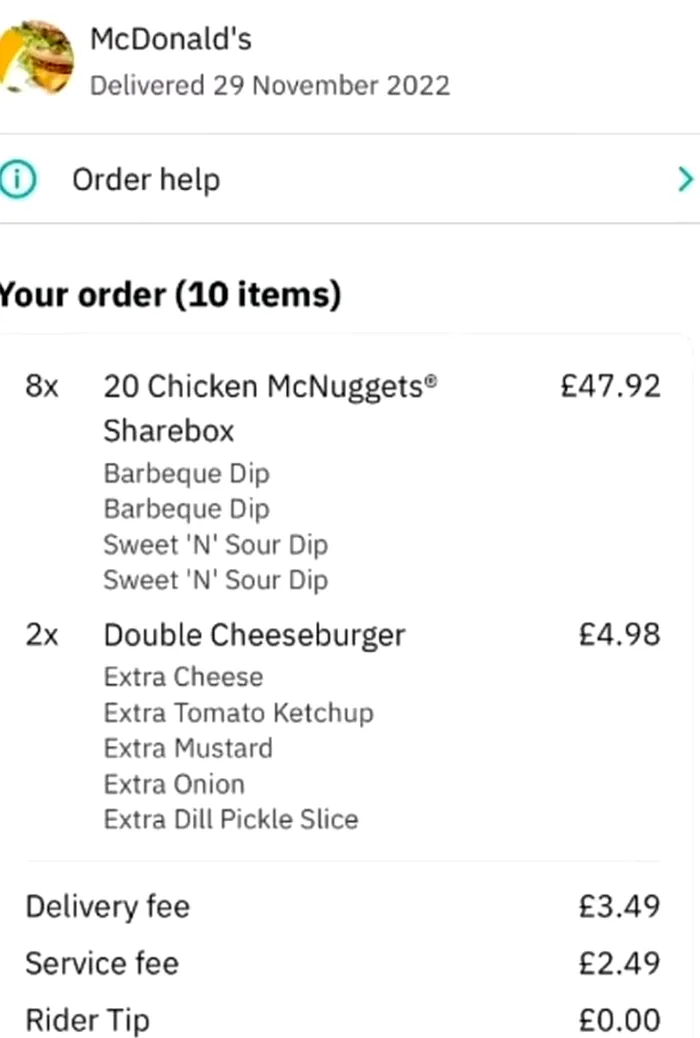 Ireal ce a comandat o femeie de la McDonalds, noaptea, după ce s-a îmbătat. Când livratorul i-a adus sacoșa la ușă, a rămas mască