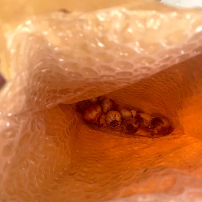Cumpărătorul a atașat și o poză cu coletul rupt la mijloc, în care se văd câteva cepe mici vrac.