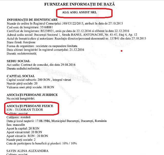 ”Întrucât mi s-a părut ciudată această așa-zisă plată și încasare în numerar, am făcut verificări la ONRC și am constatat cu stupoare că reclamantul Ion-Tudoran Tudor este asociat și deține 10% din ALG Inc Assist SRL”, care a susținut în fața instanței de judecată că ”societatea la care este asociat reclamantul a emis facturi și chitanțe fictive, cu încălcarea dispozițiilor legale în materie fiscală”, a mai declarat victima accidentului.