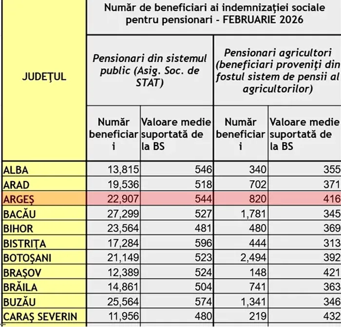 În Argeș, pensionarii primesc 544 lei în plus la pensie, în 2026.