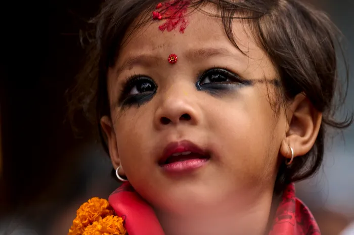 Kumari sunt selectate din clanurile Shakya ale comunității Newar, populație indigenă a Văii Kathmandu, și sunt venerate atât de hinduși, cât și de budiști. Fetițele alese trebuie să aibă pielea, părul, ochii și dinții fără cusur și să nu le fie frică de întuneric. De asemenea, ele trebuie să aibă vârsta cuprinsă între 2 și 4 ani.