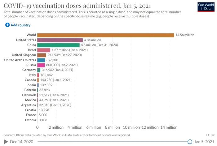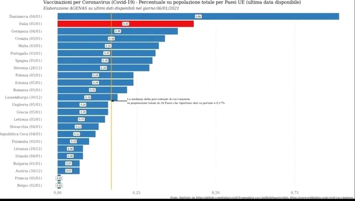 În UE media de persoane vaccinate din populația totală este de 0,17%. Cele mai multe vaccinări au avut loc în Germania, care are aproape 320.000 de persoane vaccinate; urmează Italia, cu 259.000 de vaccinări și Spania, cu 140.000.
