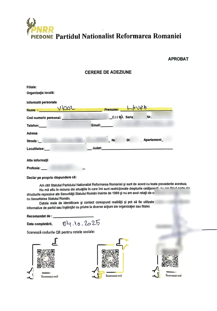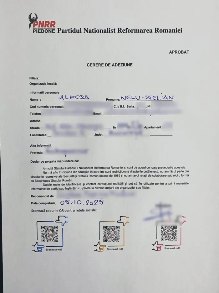 De asemenea, Partidul Naționalist Reformarea României a înregistrat și prima filială în diaspora, în Birmingham-Marea Britanie, înființată de un român, Alecsa Nelu Stelian, care trăiește peste hotare. Sunt completate peste 600 de adeziuni și continuă să vină, a mai spus Piedone, pentru Gândul.