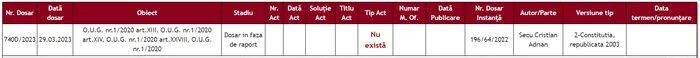 Cererea de urgentare, cu toate documentele atașate spre argumentare, a fost înregistrată la CCR pe 4 aprilie 2023, dar fără succes.