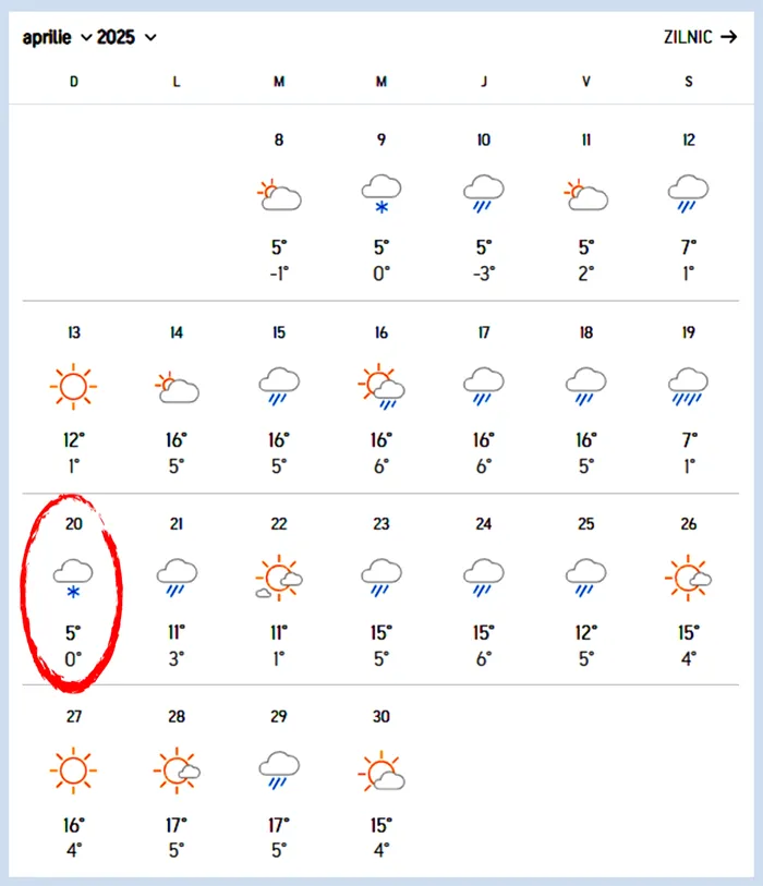 Astfel, cei care își fac planuri pentru Paște ar putea avea parte de o surpriză, asta fiindcă vremea ne joacă feste și pregătește o scurtă ninsoare.