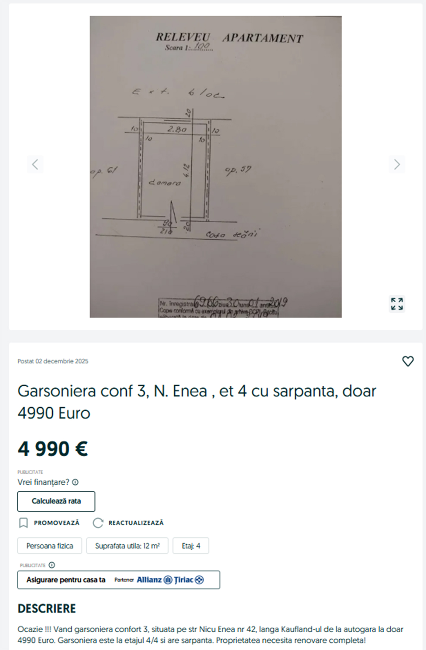 – am intrat pe olx, am selectat garsoniere de vanzare, luna decembrie