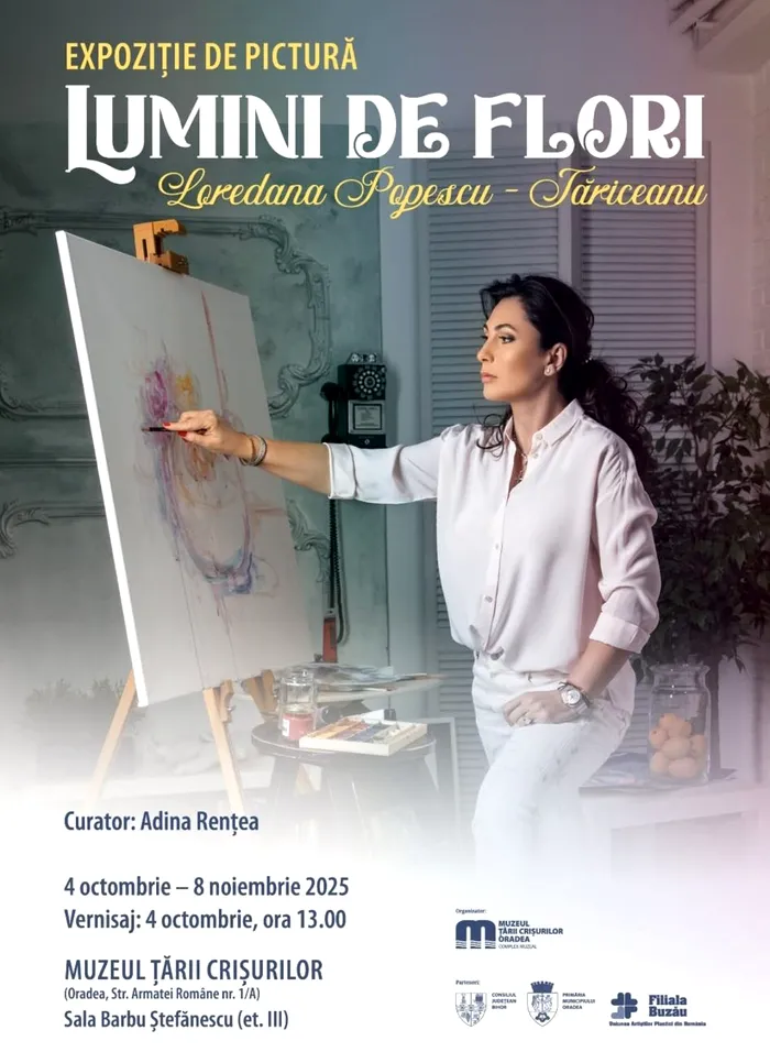 Loredana Popescu-Tăriceanu, soția fostului premier Călin Popescu-Tăriceanu, își va prezenta lucrările de pictură la Muzeul Țării Crișurilor. Expoziția intitulată „Lumini de flori” va fi vernisată sâmbătă, 4 octombrie, de la ora 13:00, în prezența artistei.