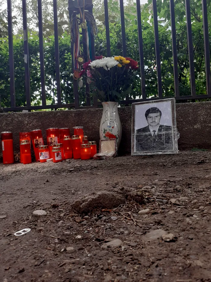În locul în care Mihăiță Nițulescu și-a perdut viața, cei apropiați, dar și vecinii i-au făcut joi, un mic altar din lumânări, flori, iar familia a așezat lângă gardul școlii și o fotografie cu cel care fost un mare campion la box.