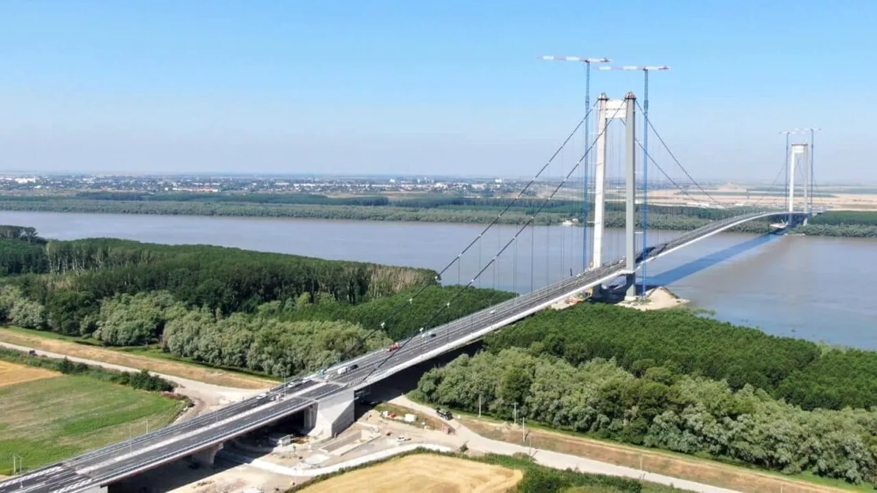 Podul suspendat peste Dunăre a costat peste 500 de milioane de euro și este supranumit Golden Gate de România.