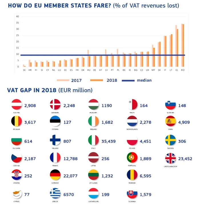 În toate statele Uniunii Europene există rețele criminale organizate care eludează sistemul de taxare. Diferența totală dintre TVA-ul estimat a fi încasat și cel încasat a fost de 140 de miliarde de euro în 2018 și de 165 de miliarde de euro anul trecut.