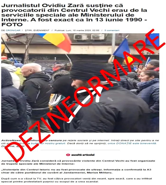 În urma unui articol publicat de activenews.ro, în care jurnalistul Ovidiu Zară a susținut că provocatorii din Centrul Vechi „erau de la serviciile speciale ale Ministerului de Interne”, reprezentanții MAI dezmint categoric această informație.