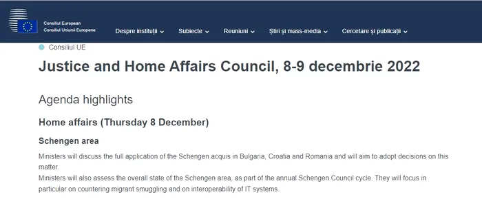 Joi, 8 decembrie, miniștrii de Interne vor discuta despre „aplicarea integrală a acquis-ului Schengen în Bulgaria, Croaţia şi România, scopul fiind să adopte decizii în acest sens”.