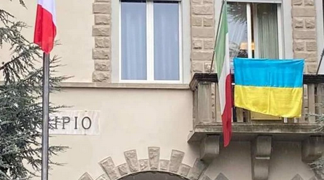 De sâmbătă, drapelul național al Ucrainei flutură pe balconul primăriei din Sarsina, în memoria bărbatului, dar și pentru poporul ucrainean.