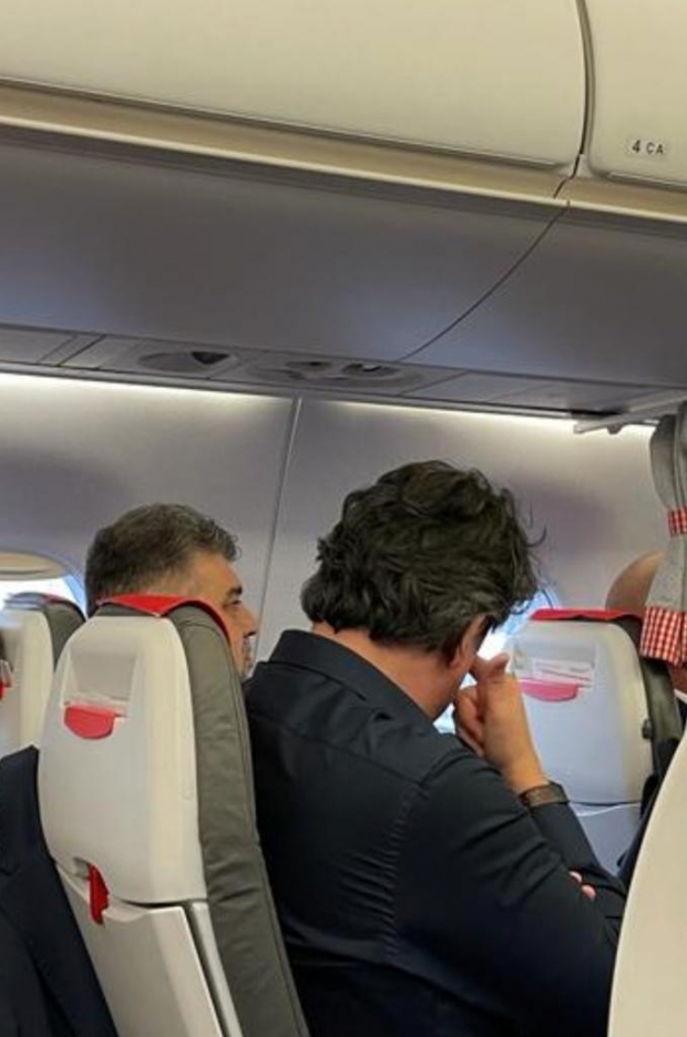 Premierul Marcel Ciolacu, în avionul care se îndreaptă către Germania