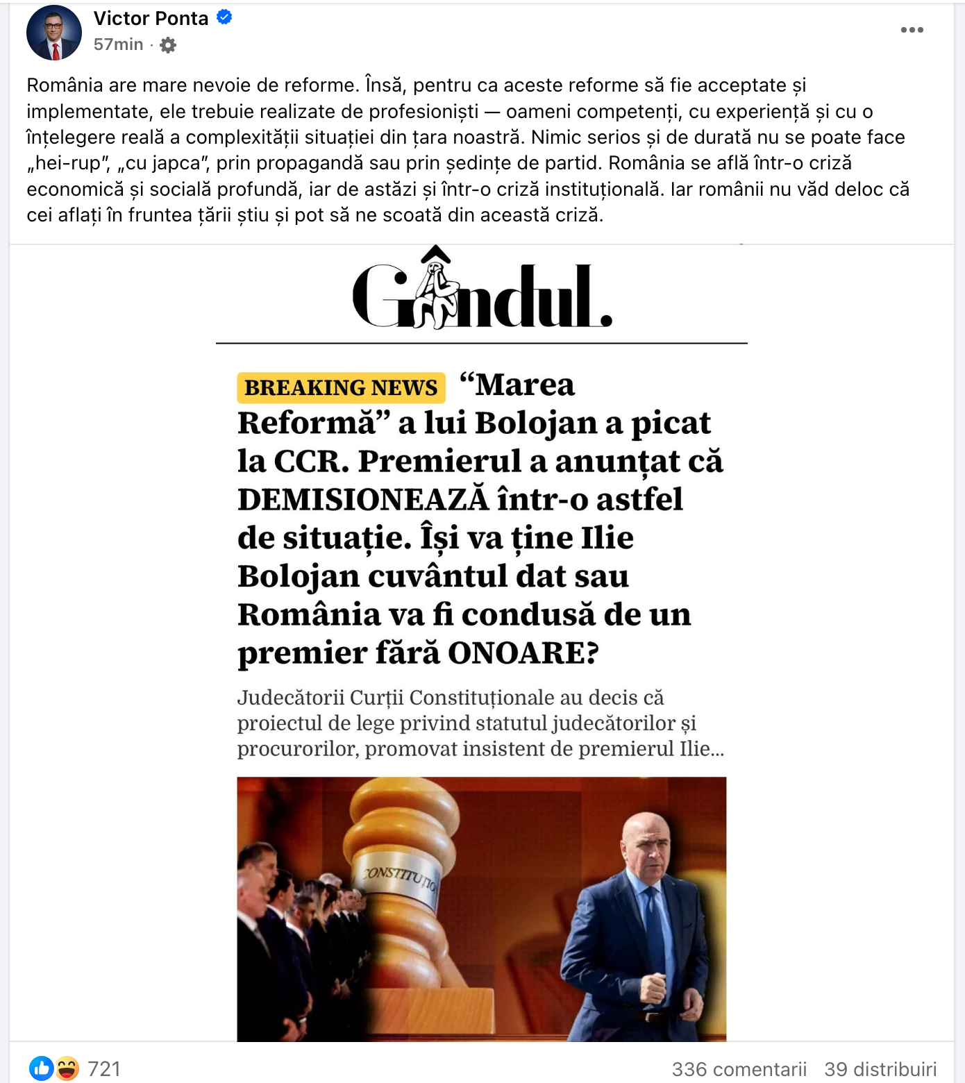 Curtea Constituțională, o instituție profund coruptă, nu mai apără Constituția și nici legile țării. Ea a devenit o barieră împotriva democrației, un instrument care cenzurează celelalte puteri în stat și blochează orice încercare de reformă reală. Curtea Constituțională a României trebuie desființată.