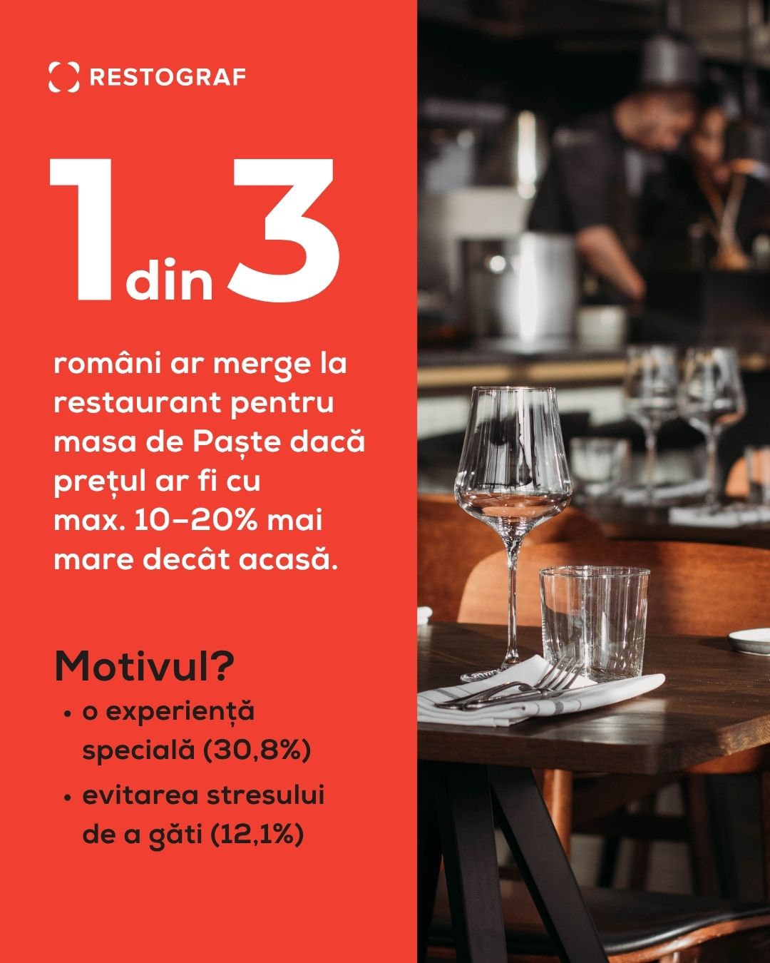 Când vine vorba de mersul la restaurant, doar 2,8% aleg această opțiune pentru masa de Paște. Cei care aleg restaurantul nu caută neapărat lux, ci o experiență diferită de cea de acasă. Totuși, 70,6% dintre toți respondenții consideră că masa de Paște la restaurant e mai scumpă decât cea gătită acasă, 14,5% văd costurile ca fiind aproximativ egale și doar 3,9% cred că restaurantul ar fi mai ieftin.