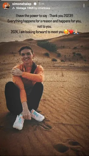 „Am puterea să spun: Mulțumesc 2023! Totul se întâmplă cu un motiv și este pentru tine, nu împotriva ta. 2024, abia aștept să te întâlnesc”, a scris Simona Halep, în engleză.