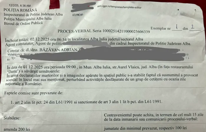 „Poliția Română m-a amendat pentru că am “perturbat activitățile desfășurate de un grup de cetățeni cu ocazia zilei naționale a României”.