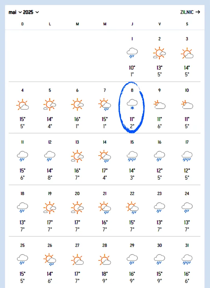 În fine, ploi foarte multe și o scurtă perioadă de ninsoare am putea avea și în luna mai, conform prognozei Accuweather. Zăpada este așteptată la Predeal pe 8 mai, iar ploile… cam toată luna.