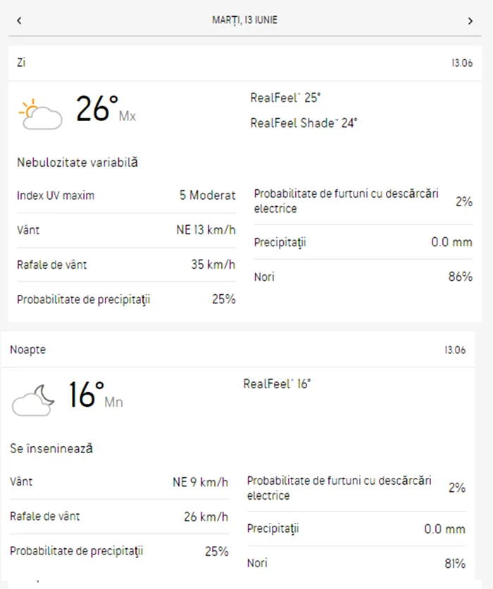 Meteorologii de la Accuweather au modificat prognoza pentru marți, 13 iunie, valabilă în București.
