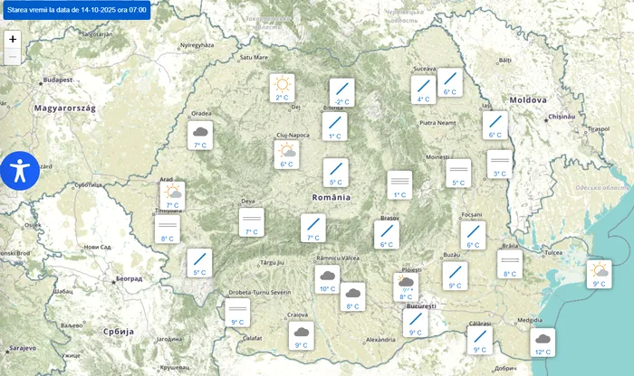 La ora 07:00, cea mai scăzută temperatură din România se înregistra la Iezer – minus 1 grad Celsius, iar cea mai ridicată – 12 grade – se înregistra la Constanța. La București, la aceeași oră, erau 7 grade Celsius.