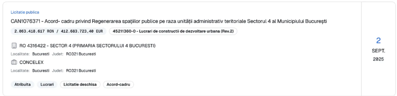 În data de 2 septembrie 2025, CONCELEX – companie integrată de construcții – a încheiat un acord-cadru cu Primăria Sectorului 4 – „Acord-cadru privind regenerarea spațiilor publice pe raza unității administrative teritoriale Sectorul 4 al Municipiului București”.