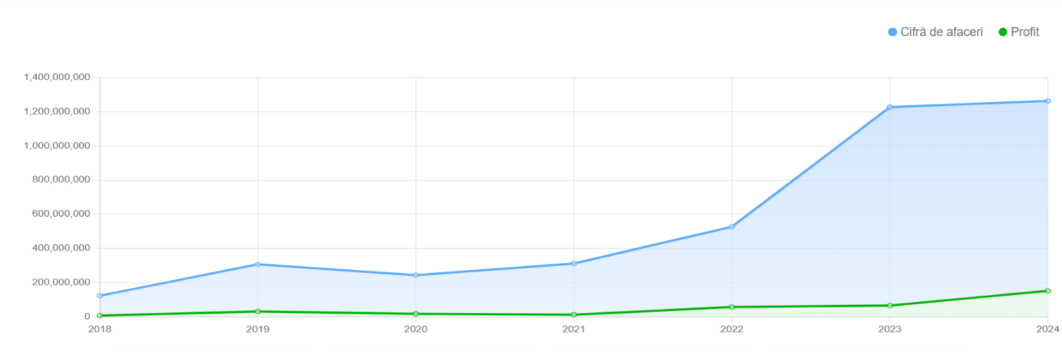 Conform termene, ro, cifra de afaceri CONCELEX SRL a fost de 1,262,917,555.00 lei în anul 2024, cu un profit de 152,064,557.00 lei.