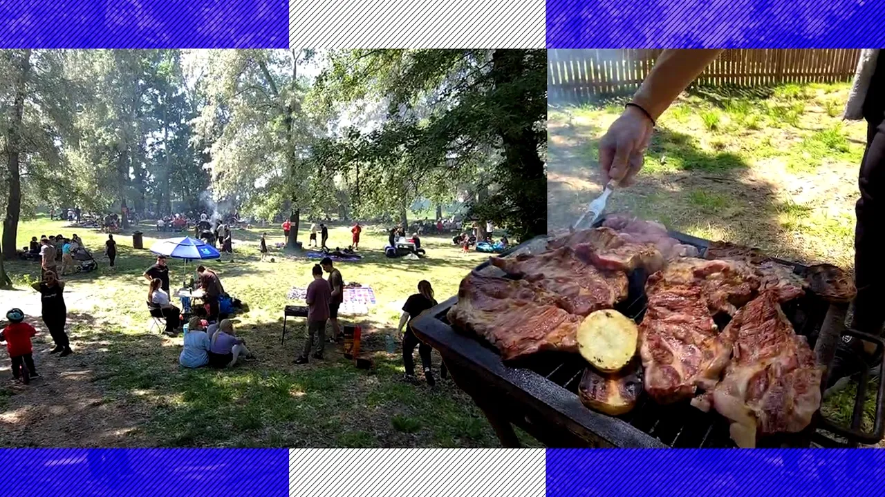 Joviali, mai mulți tineri s-au strâns în jurul unui grătar, pentru a „perpeli” cărnurile așa cum se cuvine. Secretul grătarului ni l-a dezvăluit chiar unul dintre tineri: „Secretul grătarului… voie bună și ustensilele! Și berea. Dacă nu e bere, nu-i nimic”.