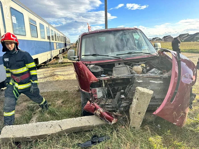 Un microbuz a fost lovit de un tren de călători, marți după-amiază, în județul Suceava. Este vorba de trenul Regio 5627, care circula pe ruta Suceava-Putna. Din fericire, în urma impactului s-au înregistrat doar pagube materiale.