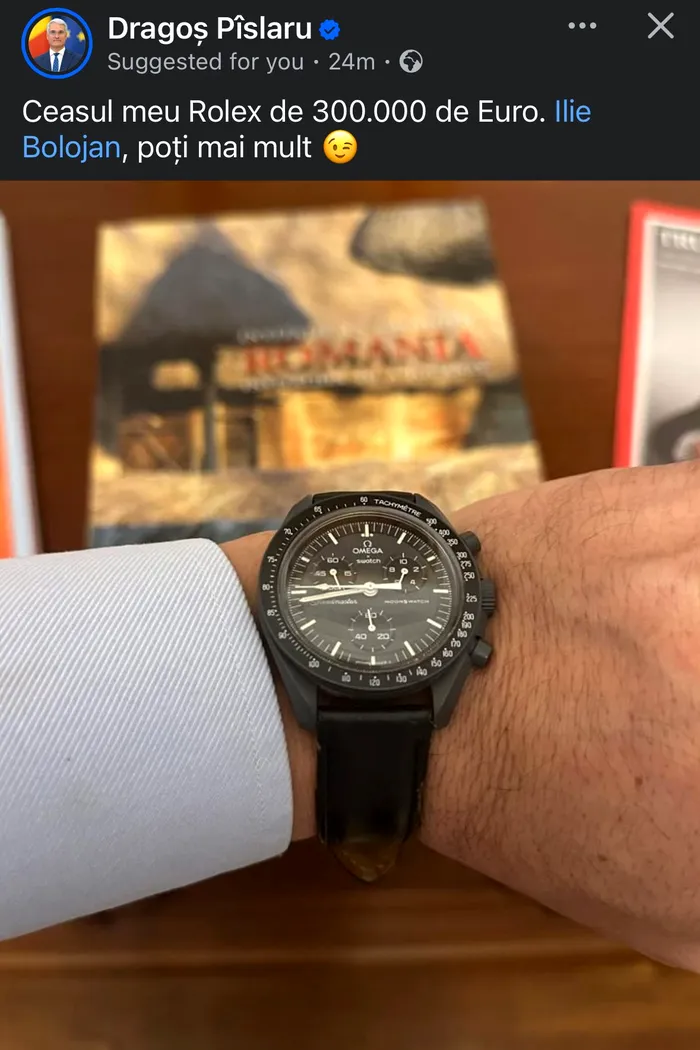 Ministrul Fondurilor Europene, Dragoș Pîslaru, sare în apărarea premierului Ilie Bolojean, în „scandalul ceasul”, postând pe rețelele de socializare o fotografie ironică, în care apare tot un ceas, alături de următorul mesaj: „Ceasul meu Rolex de 300.000 de euro. Ilie Bolojan, poți mai mult”.